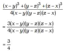 \(\cfrac{(x-y)^3{+(y-z)^{3}+(z-x)^{3}}}{4(x-y)(y-z)(z-x)}\ \ \ \ \ \ \ \ \ is \ \ equal \ \ to –\)