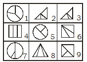 A) 1, 5, 7; 2, 3, 8; 4, 6, 9