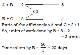 A and B together can do a work in 12 days. B and C together can do it in 15 days. If A's efficiency is twice that of C, then the days required for B alone to finish the work is  –