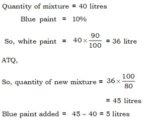 A painter mixes blue paint with white paint so that the mixture contains 10% blue paint. In a mixture of 40 litres paint, how many litres blue paint should be added so that the mixture contains 20% of blue paint ?