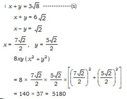 If x + y = 3\(\sqrt{8}\), x - y = \(\sqrt{2}\), find the value of 8xy (x2 + y2) is -