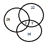 Total number of persons = 28 + 22+16 - (7+2+2) = 66 - 11 = 55