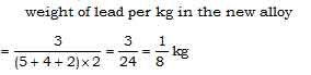 So, weight of the Lead = 3/24 = 1/8 kg.
