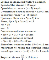 The speed in the upstream =V-2=3-2=1
