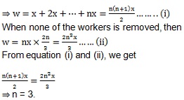 Let the work done by a worker be x units, w be the total work and n be the number of workers in the