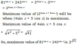 Find the maximum value of 81sin x × 243cos x.