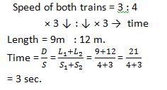 The speeds of two trains are in the ratio 3 : 4. They are going in opposite directions along parallel tracks. If each takes 3 seconds to cross a telegraph post, find the time taken by the trains to cross each other completely?