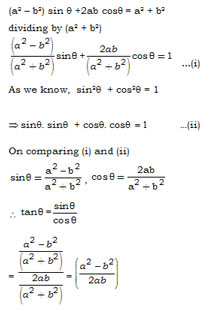 If (a2 – b2) sin \(\theta\) + 2ab cos \(\theta\) = a2 + b2, then the value of tan \(\theta\) is