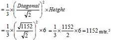 Volume of pyramid = \(\cfrac{1}{3}\) × Area of base × Height