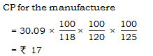 A manufacturer sells a pair of glasses to a wholesale dealer at a profit of 18%. The wholesaler sells the same to a retailer at a profit of 20%. The retailer in turn sells them to a customer for Rs.30.09, thereby earning a profit of 25%. The cost price for the manufacturer is –