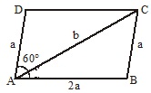 cos (180o- 60o) =\(\cfrac{4a^2+a^2-AC^2}{2\times2a\times a}\)