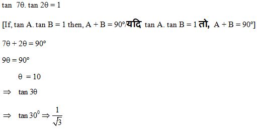 If tan 7\(\theta\) tan 2\(\theta\) = 1 the value of tan 3\(\theta\) is?