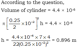 4.4 cubic cm of gas is to be drawn into a cylinder of 0.25 cm in diameter. Find its length in metre?