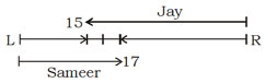 Some children are sitting in a queue facing north. Among those, Sameer is 17th from the left and second to the right of Jay, who is 15th from the right of the queue, then how many children are there is the queue?