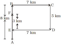 Rahul walked 8 km north from A and reached B. Then he turned right and walked 7 km and reached C. Then he turned right from C and walked 5 km and reached D. Then he again turned to its right and reached E which was 7 km away. At last he turned right and reached F which was 3 km away. What is the distance between F and B ?