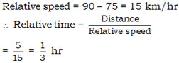 A car is chasing a motorcycle which is 5 km ahead. Their respective speeds are 90 km/hr and 75 km/hr. After how much time will the car catch motorcycle ?