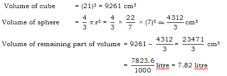 A spherical ball of diameter 14 cm is put into a cube of 21 cm and remaining part of the cube is filled with oil. What is the amount of oil is poured in the cube (in litre)
