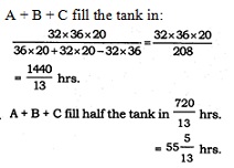A tank is filled by pipe A in 32 minutes and by pipe B in 36 minutes. When it is full, it can be emptied by a pipe C in 20 minutes. If all the three pipes are opened simultaneously, half of the tank will be filled in how many minutes?