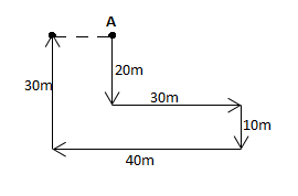 Atul walks 20 metres towards south. He then turns left and walks 30 metres. after that he turns right and walks 10 metres. Then again he turns right and walks 40 metres. After this he turns right and walks 30 metres. Now he stops. Now, in which direction is he from his starting point?