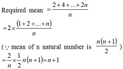 The mean of n values 2, 4, 6, 8, ....2n is: