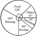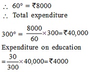 Dear Student, As Income = expenditure+saving i.e. (360°=300°+60°) Here we are given the value of 60°=8000 it means the total expenditure=300°=8000/60°*300°=40000 Expenditure on education =40000*30°/300° Ans. Rs.4000 Keep learning Team TR.