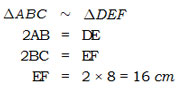 If \(\Delta\)ABC and \(\Delta\)DEF are similar such that 2AB = DE, BC = 8 cm, then the length of EF is –