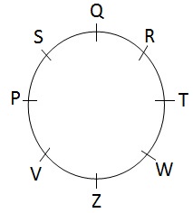 P, Q, R, S, T, V, W and Z are sitting around a circle facing at the centre. R is third to the right of Z, who is second to the right of P. S is not an immediate neighbour of Z and R.  T is third to the left of S. Q is third to the right of W, who is not an immediate neighbour of S.