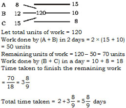 A, B and C do a piece of work individually in 8, 12 and 15 days respectively. A and B start working together but A quits after working for 2 days. After this, C joins and works till the completion of the work. In how many days will the work be completed?