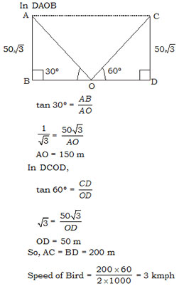 A boy standing in the middle of a field, observes a flying bird in the north at an angle of elevation of 30º and after 2 minutes, he observes the same bird in the south at an angle of elevation 60º. If the bird flies all along in a straight line at a height of  503    m. then the speed of bird in km/h.   –