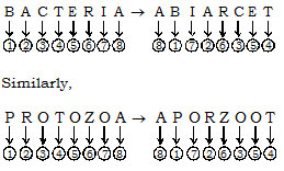 If BACTERIA can be written as ABIARCET then PROTOZOA can be written as –