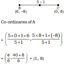 Point A divides segment BC in the ratio 5 : 1. Co-ordinates of B are (6, –8) and C are (0, 8). What are the co-ordinates of point A?