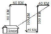 A starts from his house in his car and travels 80 km towards the North, then 60 km towards East then 100 km towards his right, 40 km towards his left, 100 km towards North and finally 40 km towards his right. In which direction is he now with reference to the starting point?