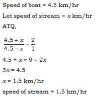 A boat goes at a speed of 4\(\cfrac{1}{2}\) km/hr in still water. If it takes 2 times as long to cover a distance of upstream then the speed of stream (in km/hr) is: