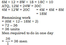 6 men can do a piece of work in 12 days while 8 women can do the same work in  18 days. The same work can be done by 18 children in 10 days. 4 men, 12 women and 20 children work together for 2 days. If one men have to complete remaining work in 1 day, then find the required number of men.