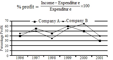 Percentage profit earned by two companies over the given years.