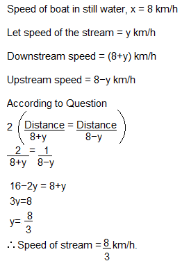 A boat goes 8 kms an hour in still water, but takes twice as much time in going the same distance against the current. The speed of the current (in km/hr) is –
