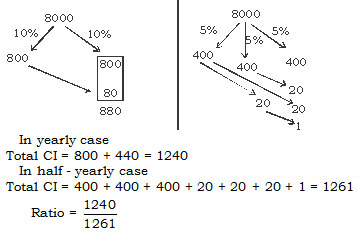 What is the ratio of the compound Interest payable Rs. 8000  at 10% per annum for  112  years yearly and half-yearly ?
