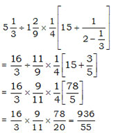 The value of \(5\cfrac{1}{3}\div1\cfrac{2}{9}\times\cfrac{1}{4}\left [ \begin{matrix}15+\cfrac{1}{2-\cfrac{1}{3}}\end{matrix} \ \ \ \ \right ]\) is: