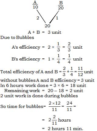 Pipe A and B can fill a tank in 10 hours and 20 hours respectively. Today morning, as soon as the pipes were opened, air bubbles generated in both the pipe due to which pipe A could work with only 1/3  of its capacity and pipe B could work with  1/4  of its capacity. After sometime, the bubbles in both pipes burst and then the tank could be filled in 6 hours. For how much time were the air bubbles present in the pipes ?
