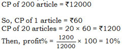 A man bought 200 articles for Rs.12000. He wanted to sell them at a profit so that he got 20 articles free. At what profit percent should he sell them?