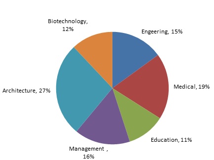 We assume total faculty is 100. and 27% of Architecture, we take 100* 27% = 27.