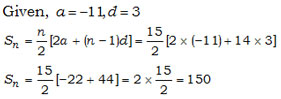 Find the sum of the 15 terms of the following series : –11, –8, –5, ……