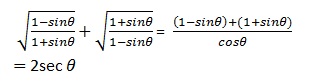 If θ lies in the second quadrant, then \(\sqrt{\cfrac{1-sin\theta}{1+sin\theta}}+\sqrt{\cfrac{1+sin\theta}{1-sin\theta}}\)    is equal to:
