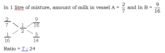 Milk and Water in two vessels A and B are in the ratio 2 : 5 and 9 : 7 respectively. In what ratio the liquids in both the vessels are mixed to obtain a new mixture in vessel C containing half milk and half water ?