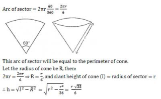 What is the height of the cone which is formed by joining the two ends of a sector of circle with radius r and angle 60°: